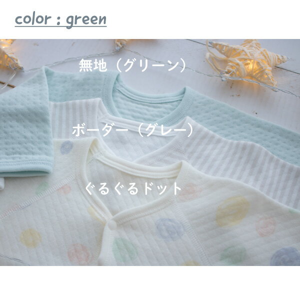 PUPO セットでお得!あったか長袖ロンパース3枚セット 外縫い仕様 ぽかぽかニットキルト ぐるぐるドット/無地/ボーダー グリーン/ピンク 70/80/90cm 日本製