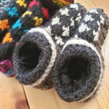 締め付け感がないのでお子さまのスリッパ代わりにも 冷えが気になる方にもオススメです むくみが出ないように足首部分横編みになっています 【サイズ】伸縮性ありキッズ 平置きにて…約12〜14センチ 原産国…ネパール ウール100% 裏地ポリエステル100% ハンドメイドのためサイズ・形や表情が写真と異なる場合があります。
