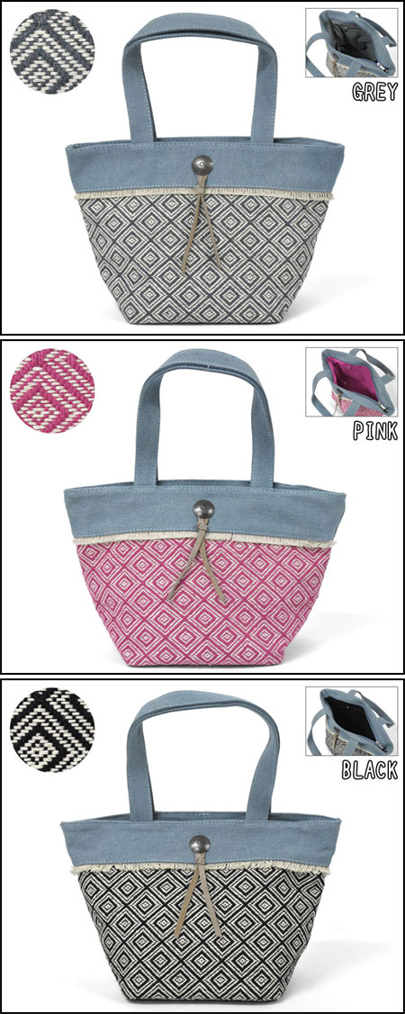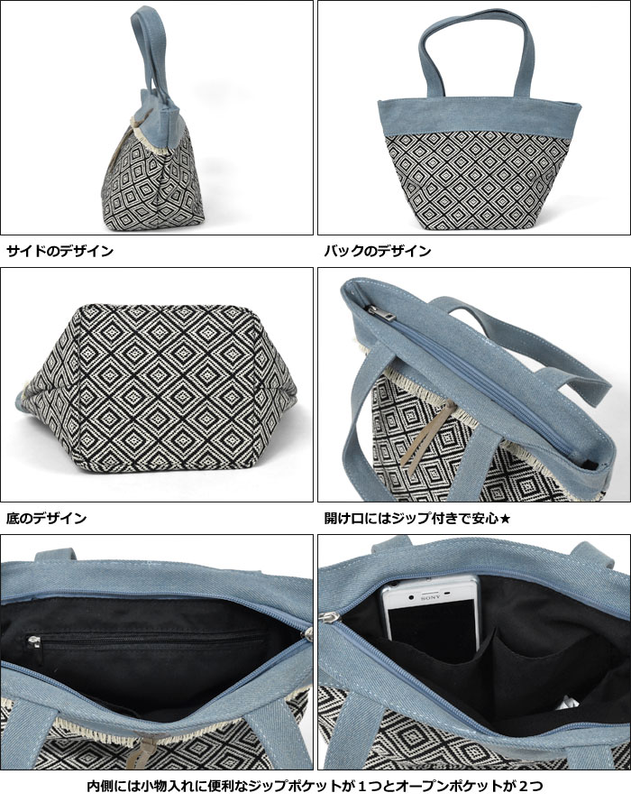 ミニトートバッグ/ミニトートバッグ レディース/トートバッグ レディース/トートバッグ レディース 小さめ/デニム 幾何学模様 ミニ トートバッグ トート コットン ランチバッグ ランチトート サブバッグ コンチョ フリンジ グレー ピンク ブラック 黒 p